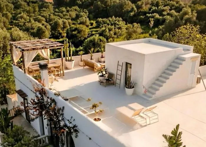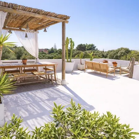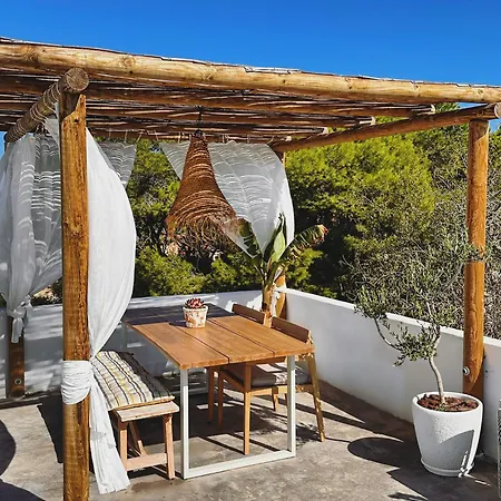De 2-slaapkamer Can Yuca I Santanyi villa ligt op 25 minuten te voet van het Natuurpark Mondragó en biedt een terras met uitzicht op de berg.